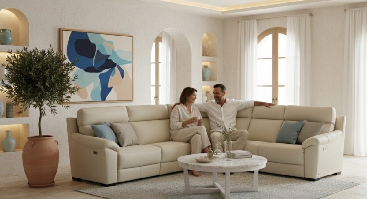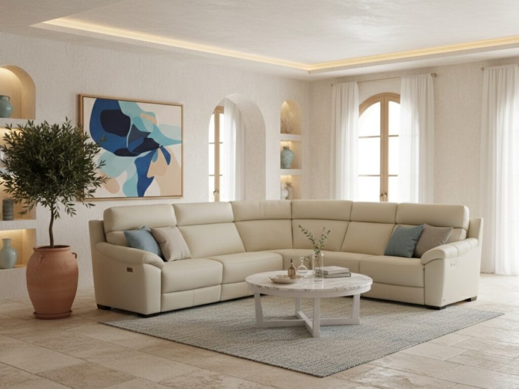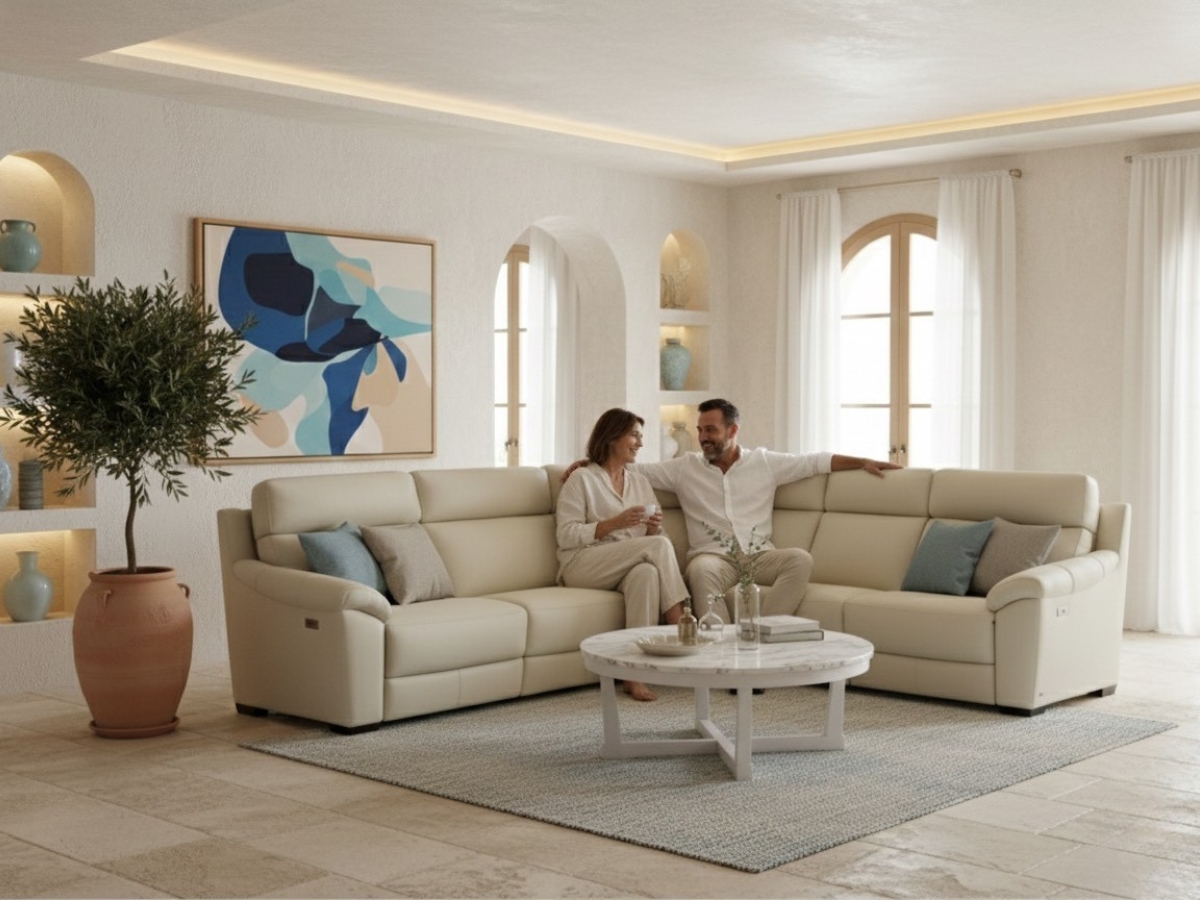 Luxusná kožená sedacia súprava, ktorá spája kvalitné materiály, moderný dizajn a vysoký komfort.